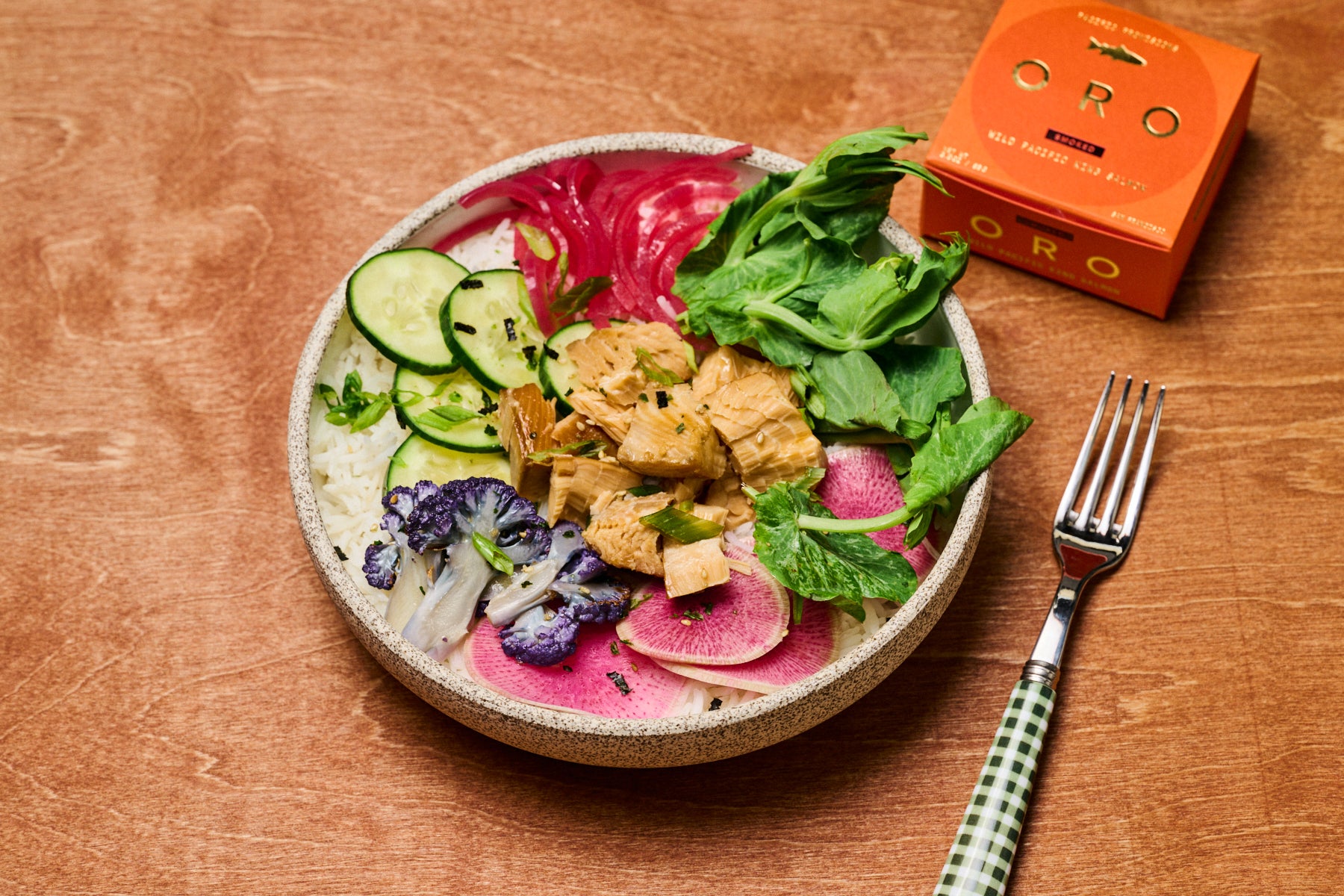 California spring-raised Rainbow Trout, California lemon olive oil, California sea salt, dill, sumac, California lemon peel.